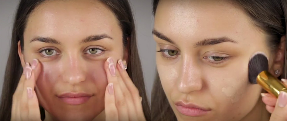 Krok 2: Przy pomocy pędzla równomiernie zaaplikuj na cerze podkład w dobranym do naturalnego koloru skóry odcieniu.