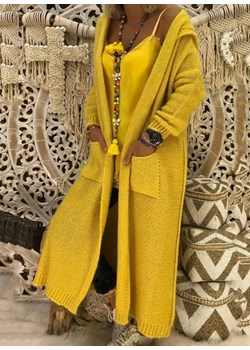 119.99 złDługi rękaw dłuższy jodełka dzianina ciepły zima jesień kieszenie dekolt prosty płaszcz Melodiah żółty sweter (S)