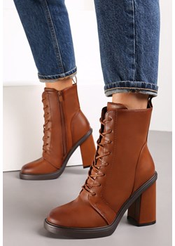 111.99 złBrązowe Botki na Słupku i Platformie z Dopasowaną Cholewką Grela