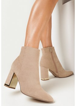 94.99 złBeżowe Botki na Obcasie z Imitacji Zamszu Nakiah