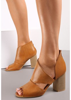 74.99 złBrązowe Botki na Słupku z Ozdobnymi Wycięciami Peep Toe Mivonno