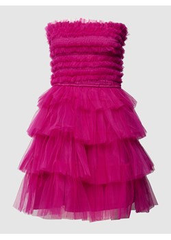 Różowa Taliowana Sukienka z Tiulową Spódnicą i Górą z Koronki Darela