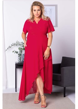 Sukienka na wesele z dłuższym tyłem szyfonowa MONIKA malinowa