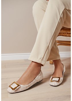 Beżowe Koronkowe Balerinki z Prostokątną Klamerką i Kwadratowym Noskiem Nolakia