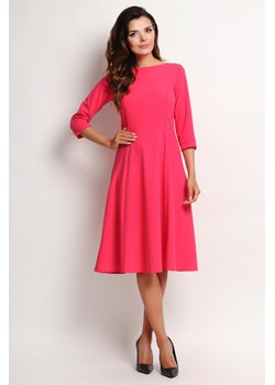 177.90 złRóżowa Elegancka Rozkloszowana Sukienka Midi z Rękawem 3/4