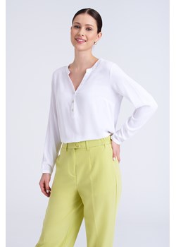 Biała, prosta bluzka z dekoltem typu henley