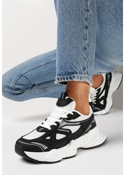 Biało-Czarne Sneakersy na Grubej Podeszwie z Błyszczącymi Wstawkami i Sznurowaniem Lirevasa