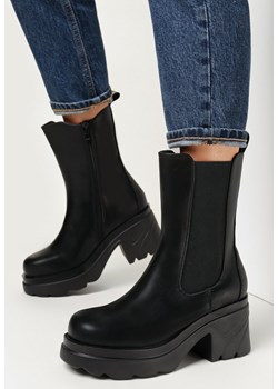 Czarne Botki Sztyblety na Słupku z Elastyczną Wstawką Lunura