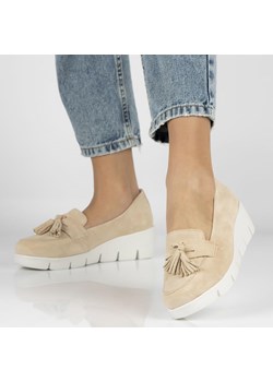 209.00 złBeżowe skórzane mokasyny damskie, półbuty na platformie z frędzlami Fi