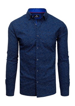 Koszula Męska Elegancka Wizytowa do garnituru granatowa w paski z długim rękawem w kroju REGULAR Laviino B049