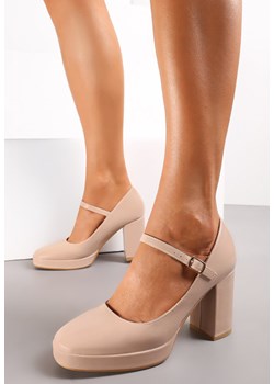 69.99 złBeżowe Zapinane Czółenka na Słupku i Niskiej Platformie Bevuma
