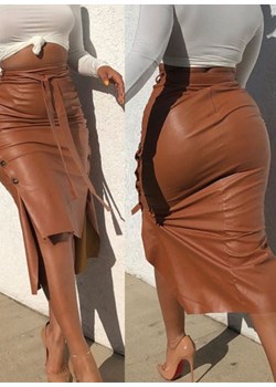 Spódnica midi ze skóry pu zapinana na guziki brązowy (S)