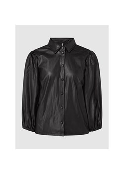 Zapinana na guziki koszula z długim rękawem ze skóry pu bluzka czarny
