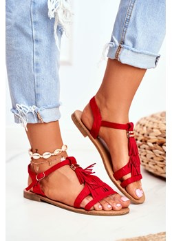 39.00 złSandały Damskie Płaskie Zamszowe Boho Czerwone Lucami