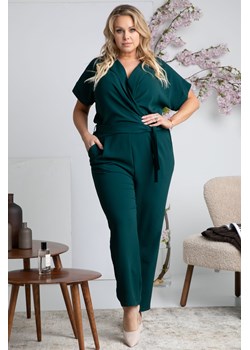 Kombinezon elegancki kopertowy dekolt FARIDA butelkowa zieleń