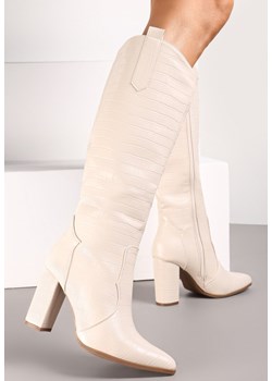 116.24 złBeżowe Kozaki na Słupku w Krokodyli Wzór Rereya
