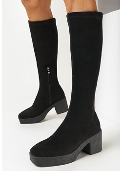 149.99 złCzarne Kozaki za Kolano na Geometrycznym Obcasie i Platformie Vaphi