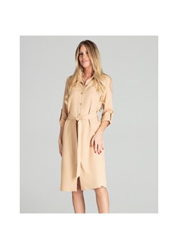 95.99 złSUKIENKA ELLE BEŻ PRĄŻEK MIDI Z PASKIEM DEKOLT W SZPIC UNI