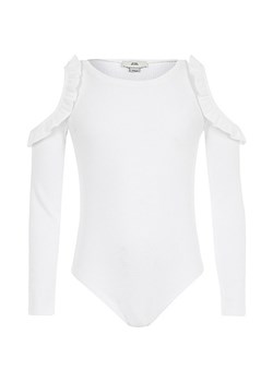 Girls white rib frill cold shoulder bodysuit