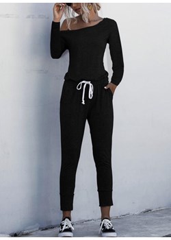68.99 złDługa nogawka wąska długi rękaw dekolt łódka ściągacz wiązanie casual kieszenie czarny kombinezon (S)