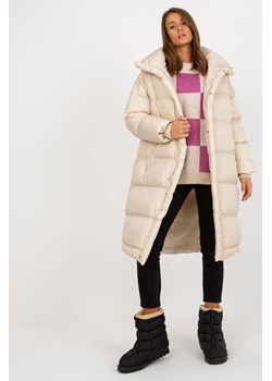 Jasnobeżowa długa puchowa kurtka zimowa oversize