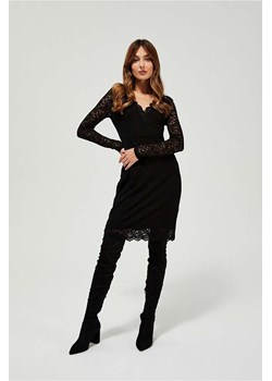 Sukienka Moodo.pl dopasowana koronkowa z długim rękawem na wesele mini