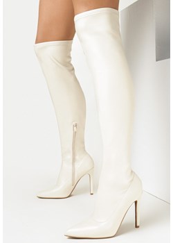 Kozaki damskie Tymoteo na zamek białe na obcasie