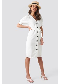 NA-KD Classic Linen Blend Buttoned Dress - White