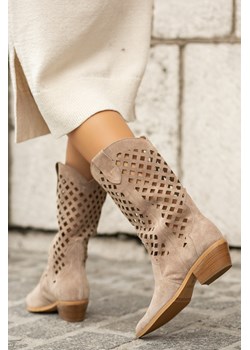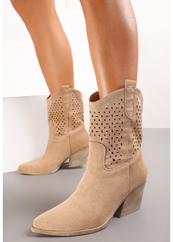 108.49 złCiemnobeżowe Ażurowe Botki Kowbojki z Imitacji Zamszu Hensy