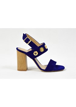 219.00 złMargoShoes szafirowe niebieskie sandałki buty letnie z ozdobnymi oczkami w kolorze złotym na drewnianym słupku skóra naturalna