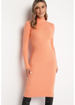 38.49 złPomarańczowa Prążkowana Sukienka Midi z Półgolfem ze Sweterkowej Dzianiny Elarion